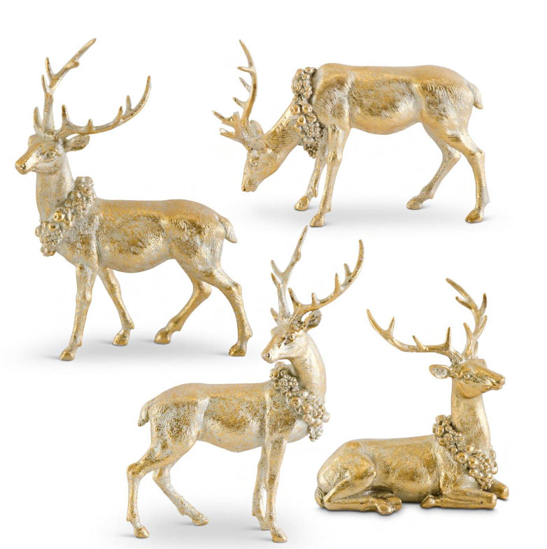 With gracefully graduated sizes (8.75"H x 6.5"W x 3.25"D), they’re perfect for creating a dynamic display in clusters, adding sparkle to holiday décor, or bringing a whisper of woodland whimsy to your everyday styling. Their antique gold finish catches the light beautifully, making each deer shimmer like treasure.