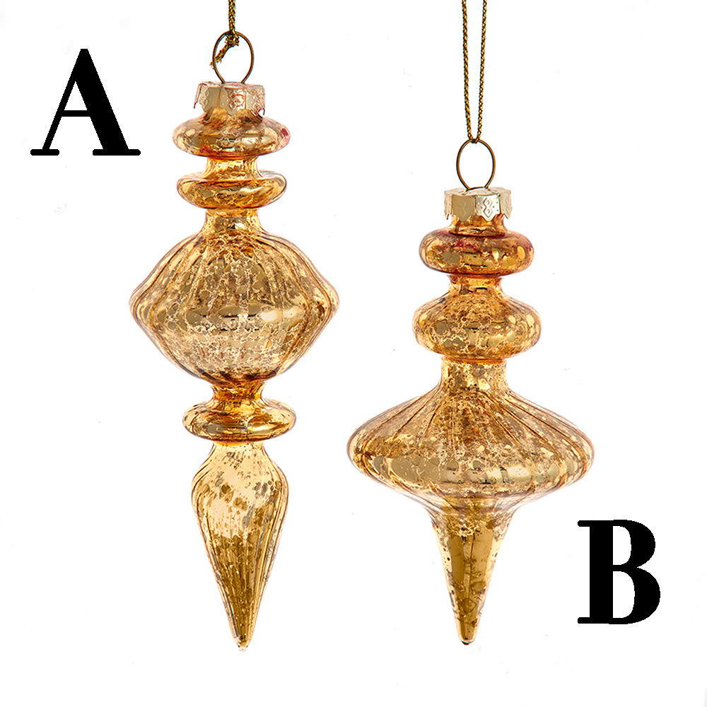 These glass gold finial ornaments from Kurt Adler are a festive addition to any holiday décor or Christmas tree. This assortment features two uniquely shaped glass finial ornaments.
