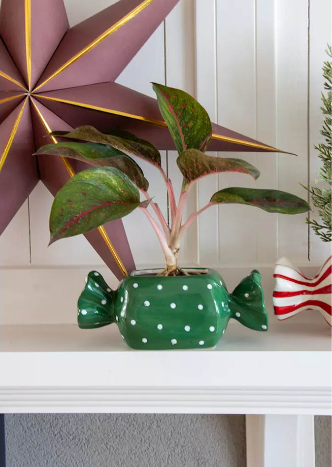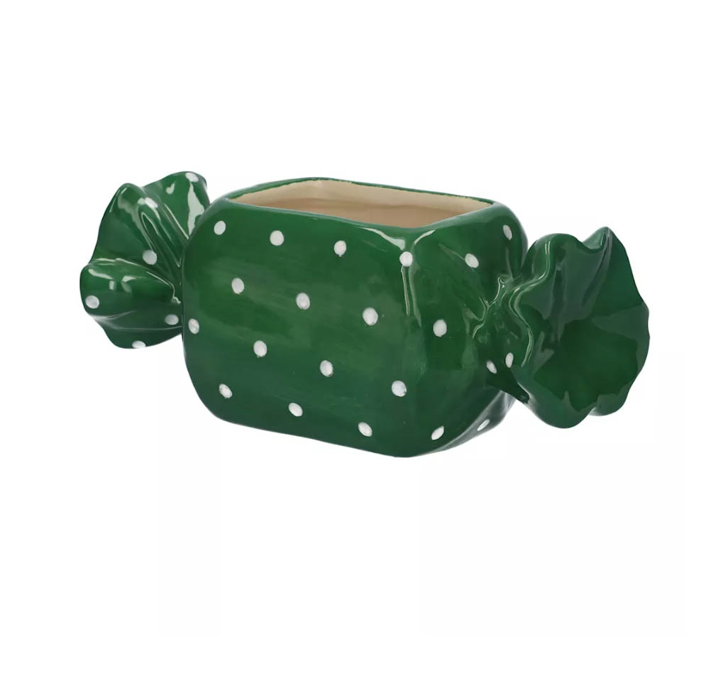 Plant the seed of festive cheer into any space with this playful Green Holiday Candy Planter! Crafted from glossy ceramic with a charming, dotted texture, this planter is as sweet as a holiday treat—without the sugar rush. Its cheerful green hue makes it the perfect little home for your favorite plants, winter succulents, or even a delightful display of candy canes.