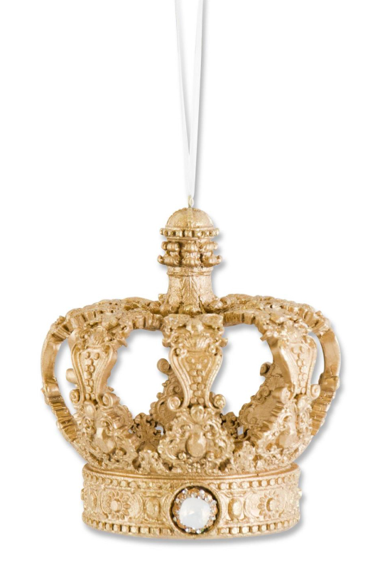 Make your tree feel truly royal with the K&K Interiors Jeweled Crown Resin Ornament! This sparkling gold crown, topped with a dazzling white jewel, adds a touch of majestic charm to your holiday décor. Crafted from sturdy resin and sized at 5.5" H x 4.75" W x 5" D, it’s the perfect mix of elegance and holiday fun. Let this little crown reign supreme on your tree or in a festive display—it’s a jewel of joy for the season!