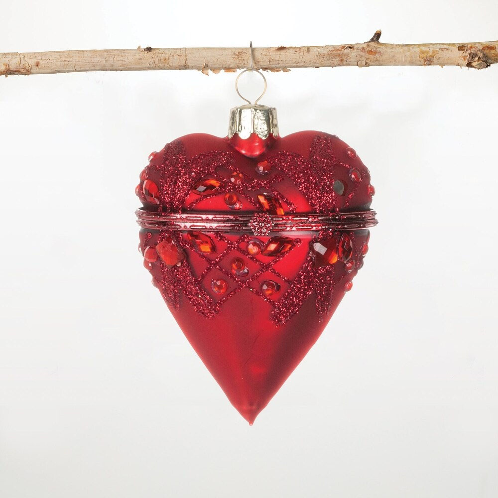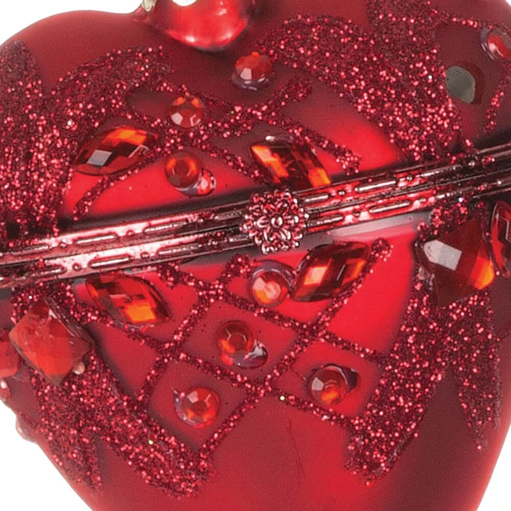 Each exquisite bejeweled heart ornament features a delicate metal hinge, allowing it to open gracefully and close securely with an elegant golden clasp. Perfect for adorning your Christmas tree, this charming ornament adds a touch of romance to your holiday decor. It also makes a thoughtful gift for that special someone—fill the inner compartment with jewelry or a surprise monetary gift to express your love in a unique way!