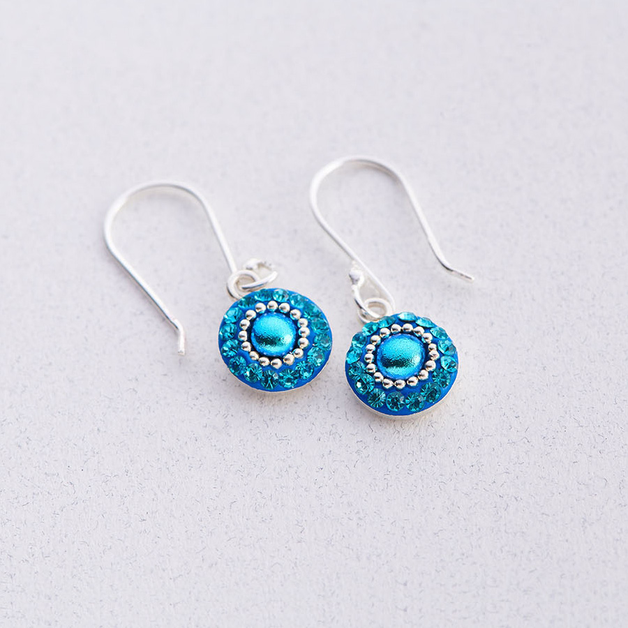 - Sterling silver bezel with hand‑set miniature Austrian crystals.