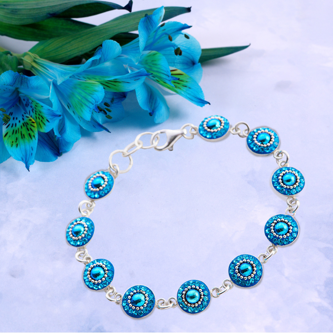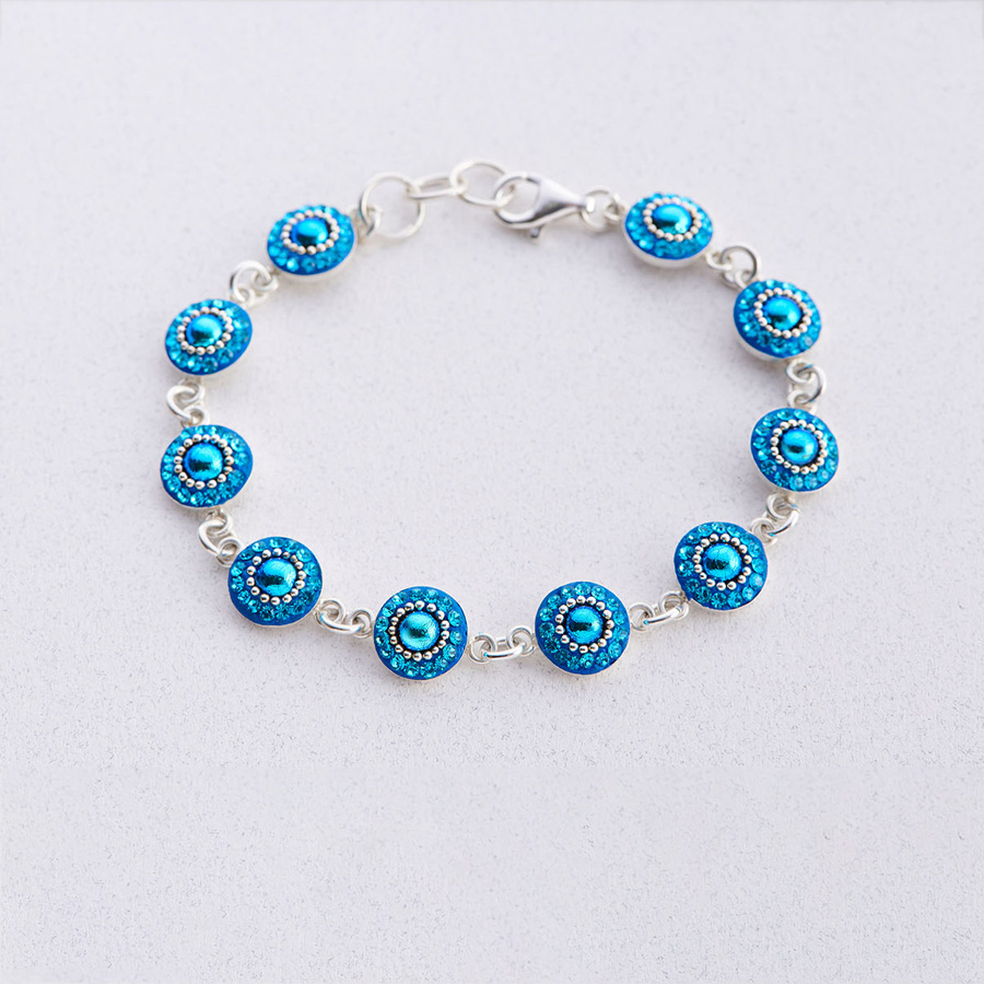 Experience the beauty of the sea and the artistry of generations with the Dots of Joy Ocean’s Cry Bracelet. Each round element is meticulously set with brilliant Austrian crystals arranged to shimmer like sunlight dancing across ocean waves. The vivid blues are inspired by the movement and depth of open water, inviting, calming, and full of life.